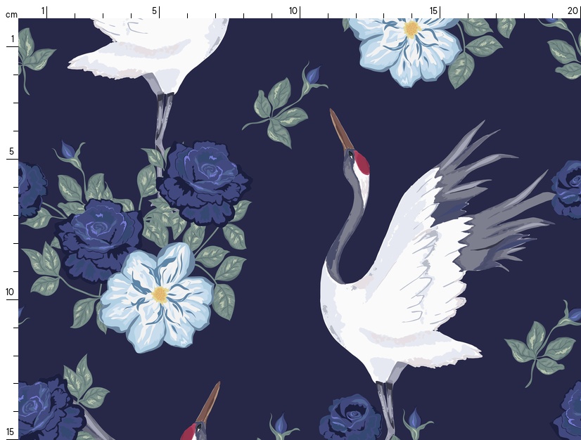 Designs / Blue flowers and cranes